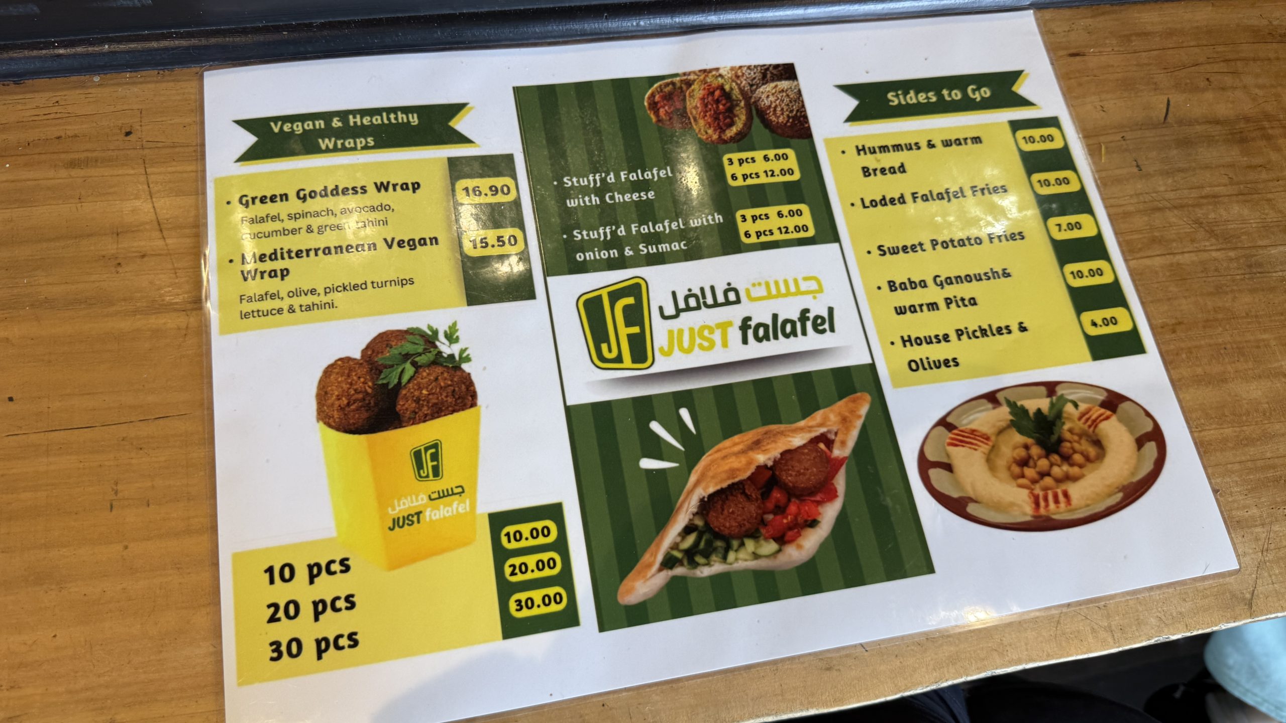 Fourteen fifty for the falafel.